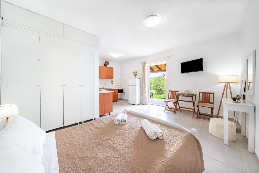 Apartamentul este amplasat într-o zonă calmă, potrivită pentru vacanțe odihnitoare. Poziționarea permite acces rapid către centrul stațiunii Sidari. Distanța până în centrul animat poate fi parcursă în aproximativ 15 minute de mers pe jos.
