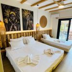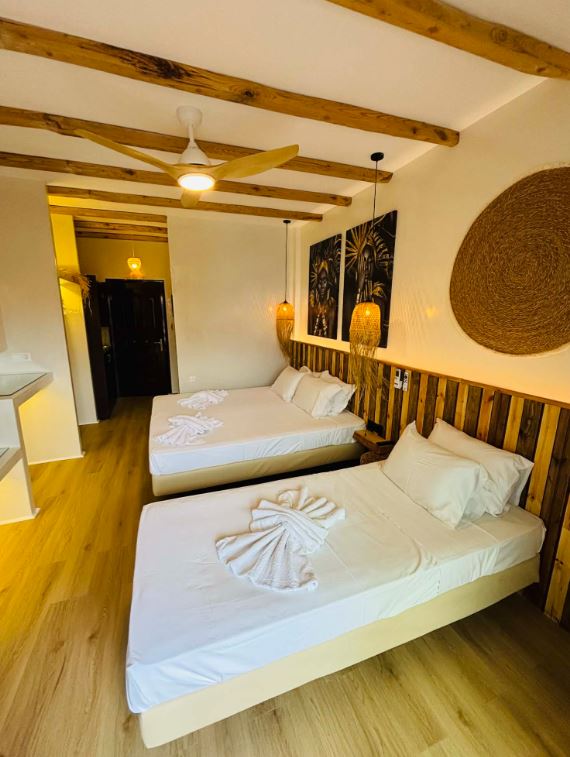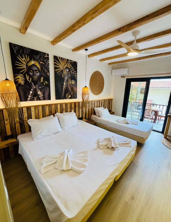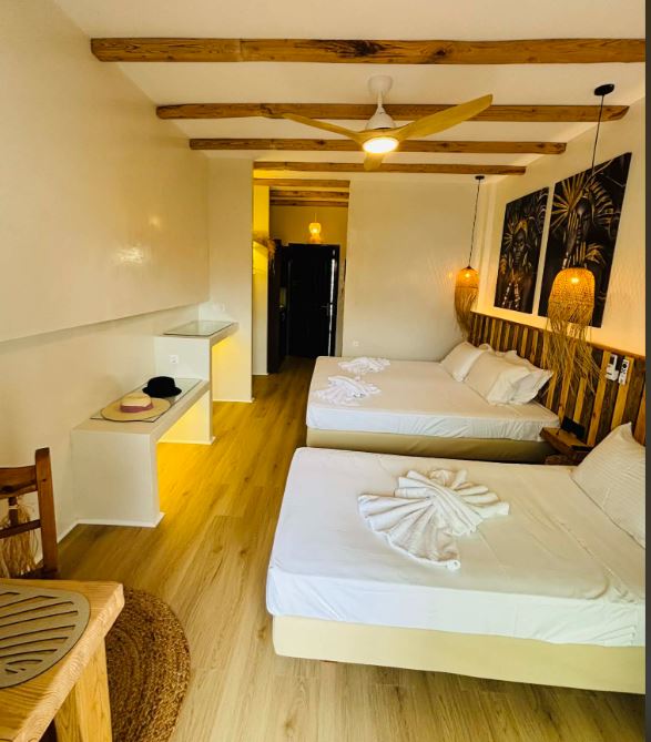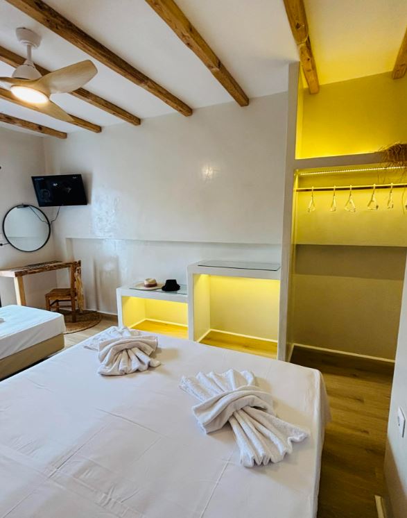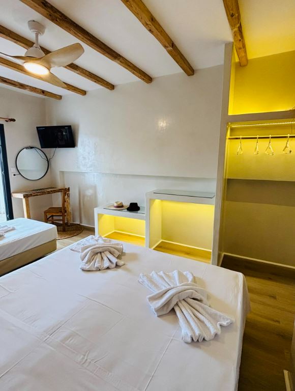 Unitatea de cazare oferă 15 camere moderne, adaptate diferitelor tipuri de turiști. Structura de cazare include 10 studiouri duble, 2 studiouri triple și 3 studiouri cvadruple. Camerele sunt amplasate la parterul superior, primul etaj și al doilea etaj. Fiecare unitate oferă vedere laterală sau directă către mare.