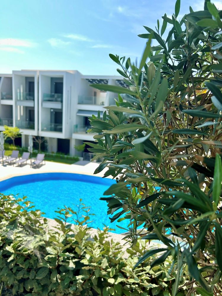 Olea Luxury Stay, apartament de lux în Nikiti, Halkidiki, aproape de plajă și centru, cu piscină, WiFi, aer condiționat, bucătărie utilată, ideal pentru familii, cupluri sau grupuri mici.