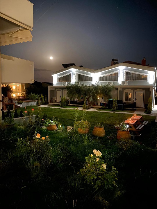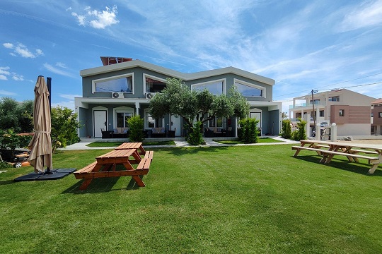The House of the Roses, cazare modernă în Gerakini, aproape de plajă, cu apartamente spațioase, studiouri pe două niveluri, grădină, facilități complete și acces rapid la atracțiile din Halkidiki.