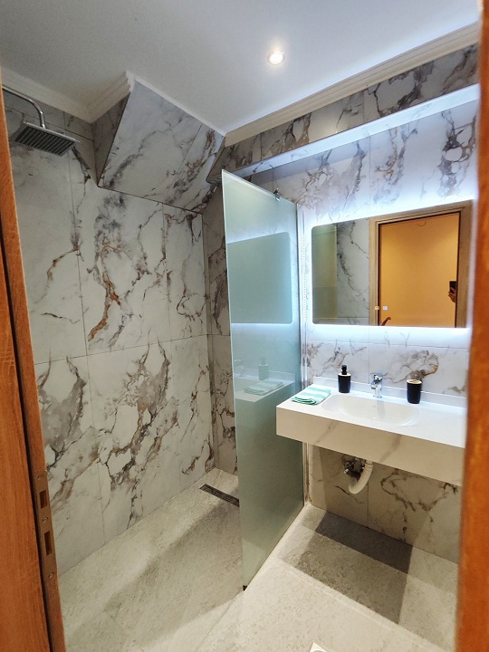 Apartamentele Superioare cu Vedere la Mare sunt situate la etajul întâi și oferă o perspectivă amplă asupra mării. Acestea includ două dormitoare, un living spațios, o bucătărie complet utilată și o baie modernă. Capacitatea maximă este de șase persoane.
